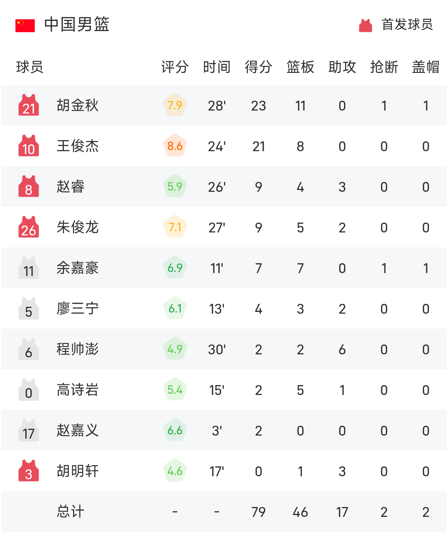 08月14日讯 25赛季男篮亚洲杯 1/4决赛,中国男篮对阵韩国男篮。双方全场战罢,中国男篮79-71战胜韩国男篮。胡金秋砍下全场最高的23分11板,率领中国男篮成功取胜。